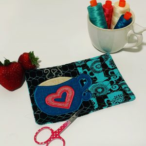 I embroidered this cute mug rug from Kimberbell using fun fabrics and Aurifil cotton thread. I used my BERNINA 570QEE