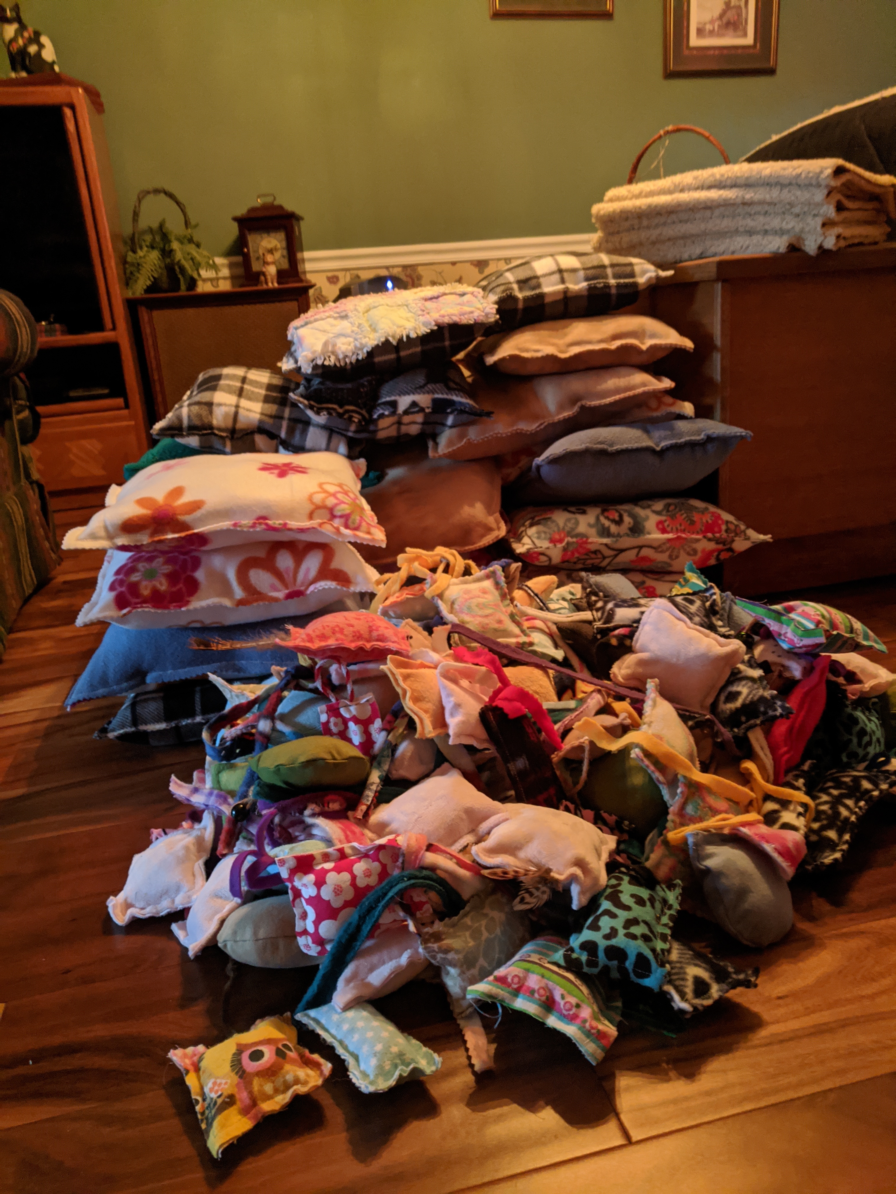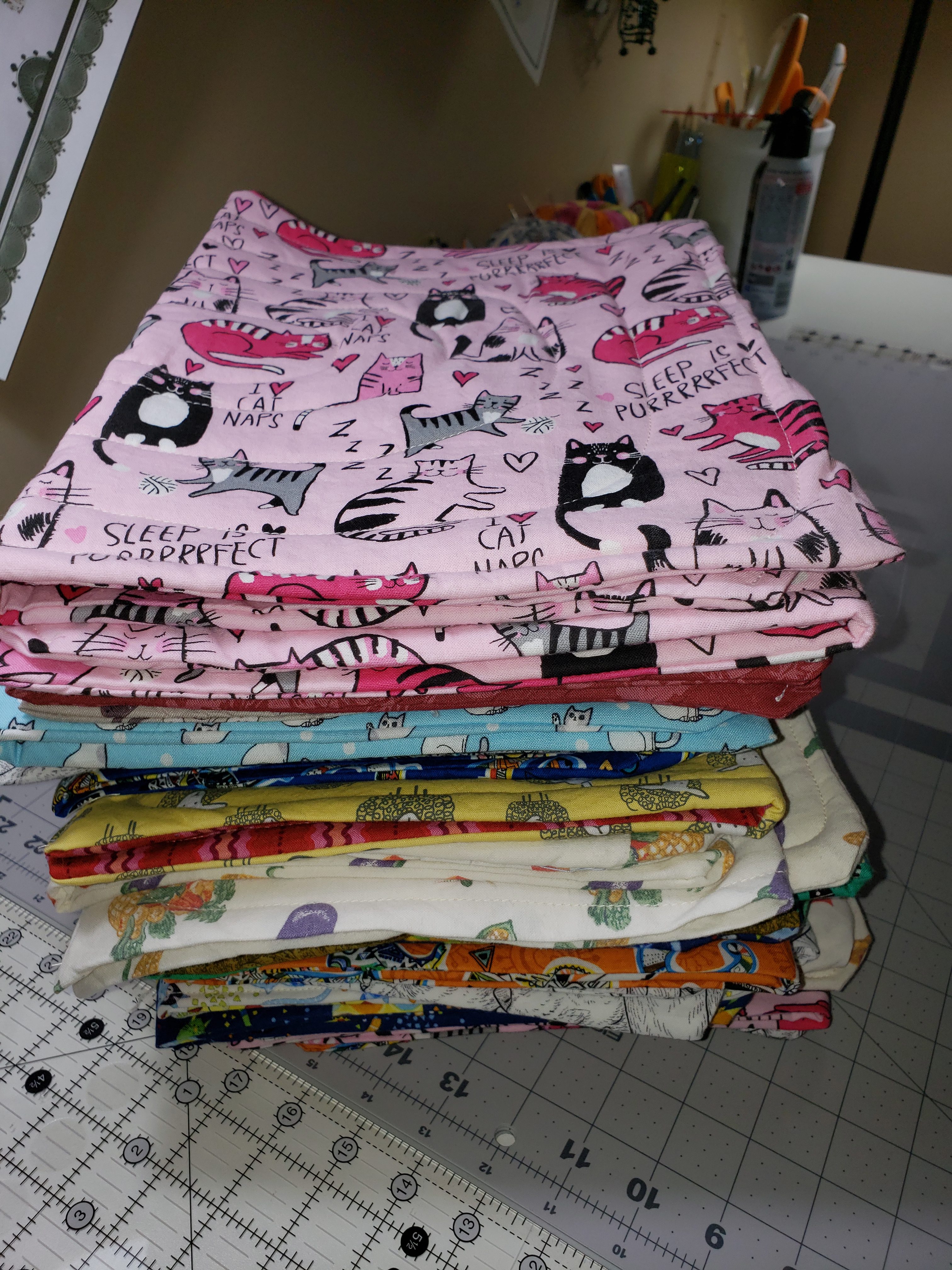 My Mom and I made all of these beds and cat toys from “scraps” donated to me for this purpose … More