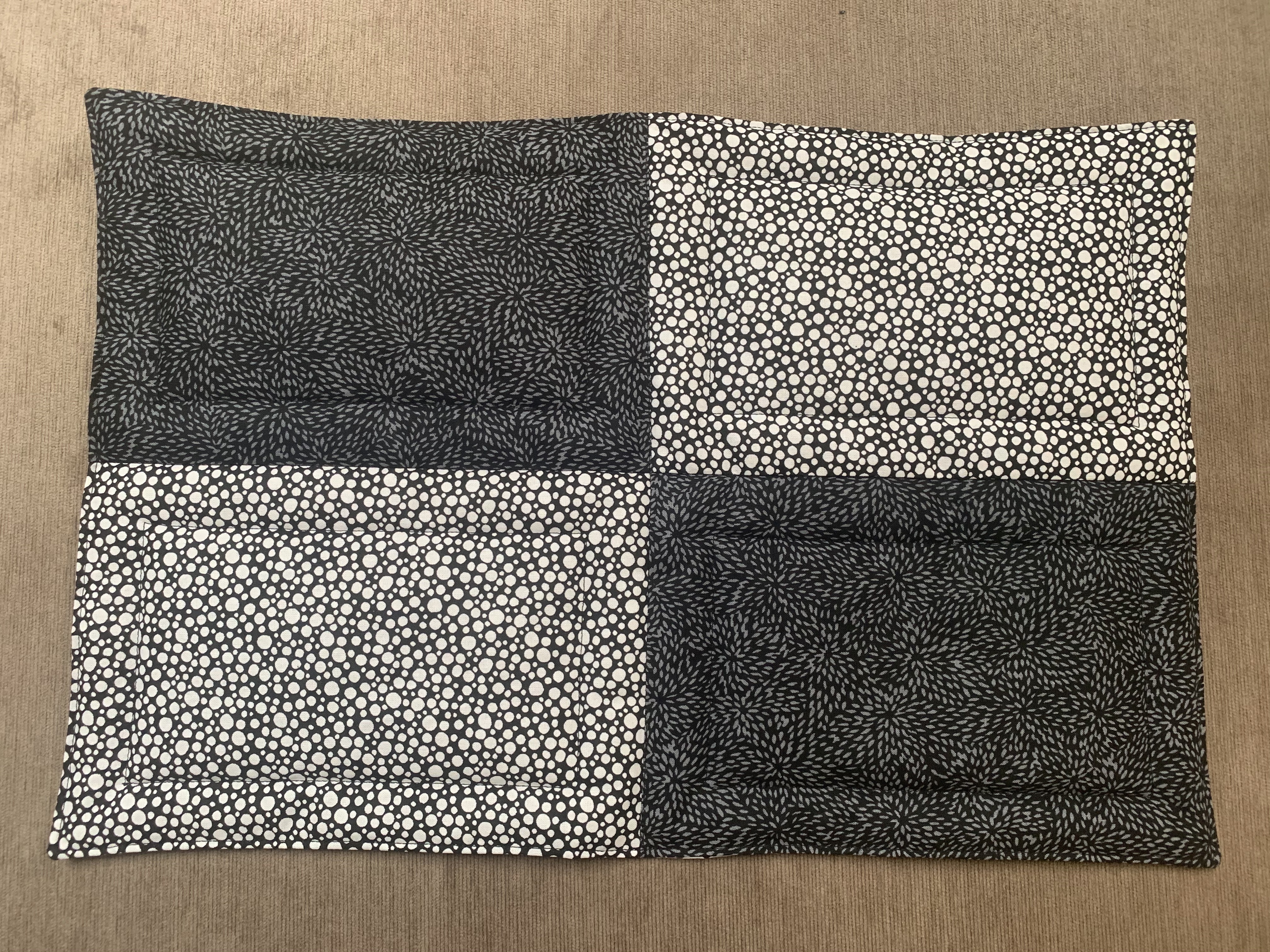 This kennel quilt was hand made to fit small pet carriers and kennels, and help provide comfort to animals in shelters. … More