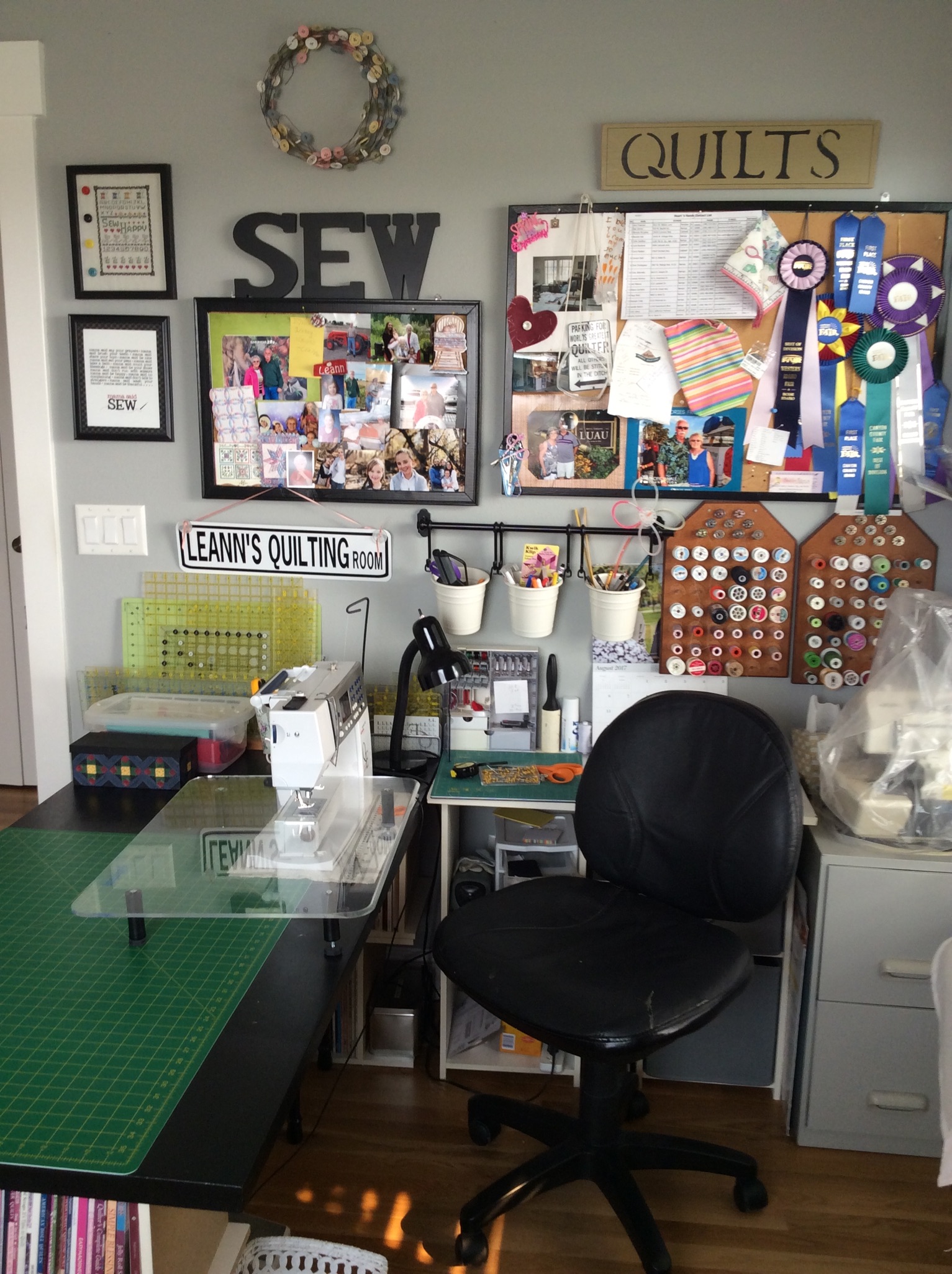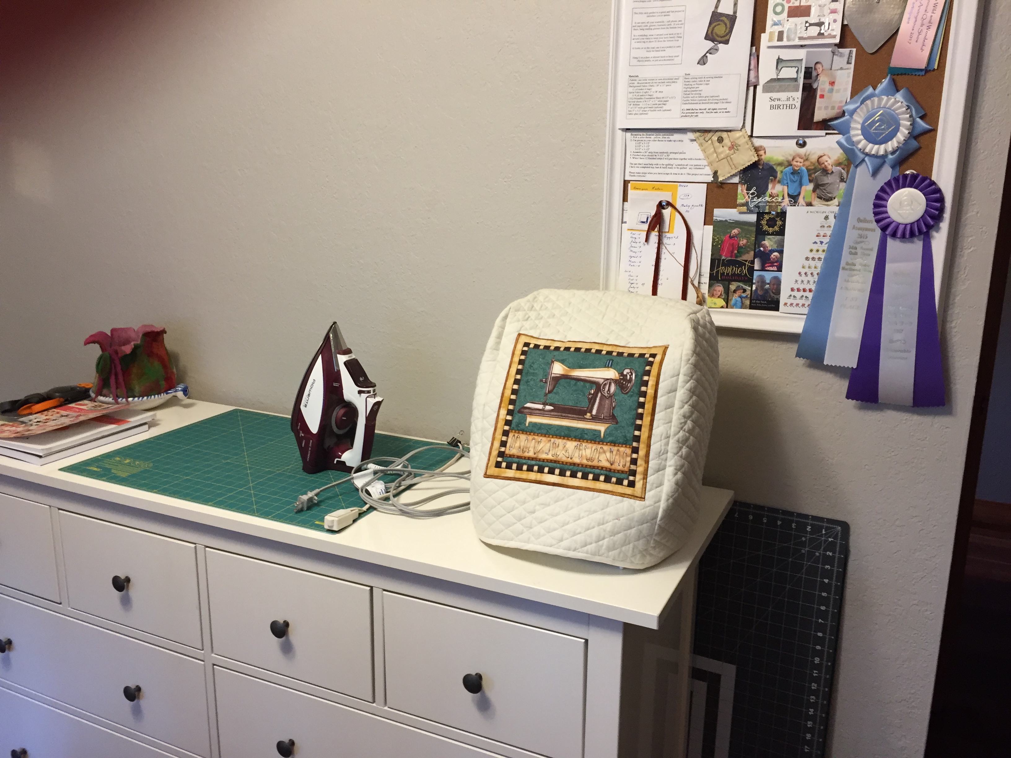 This is my little happy place. It’s decorated with a lot of vintage sewing things. I made the sewing machine … More