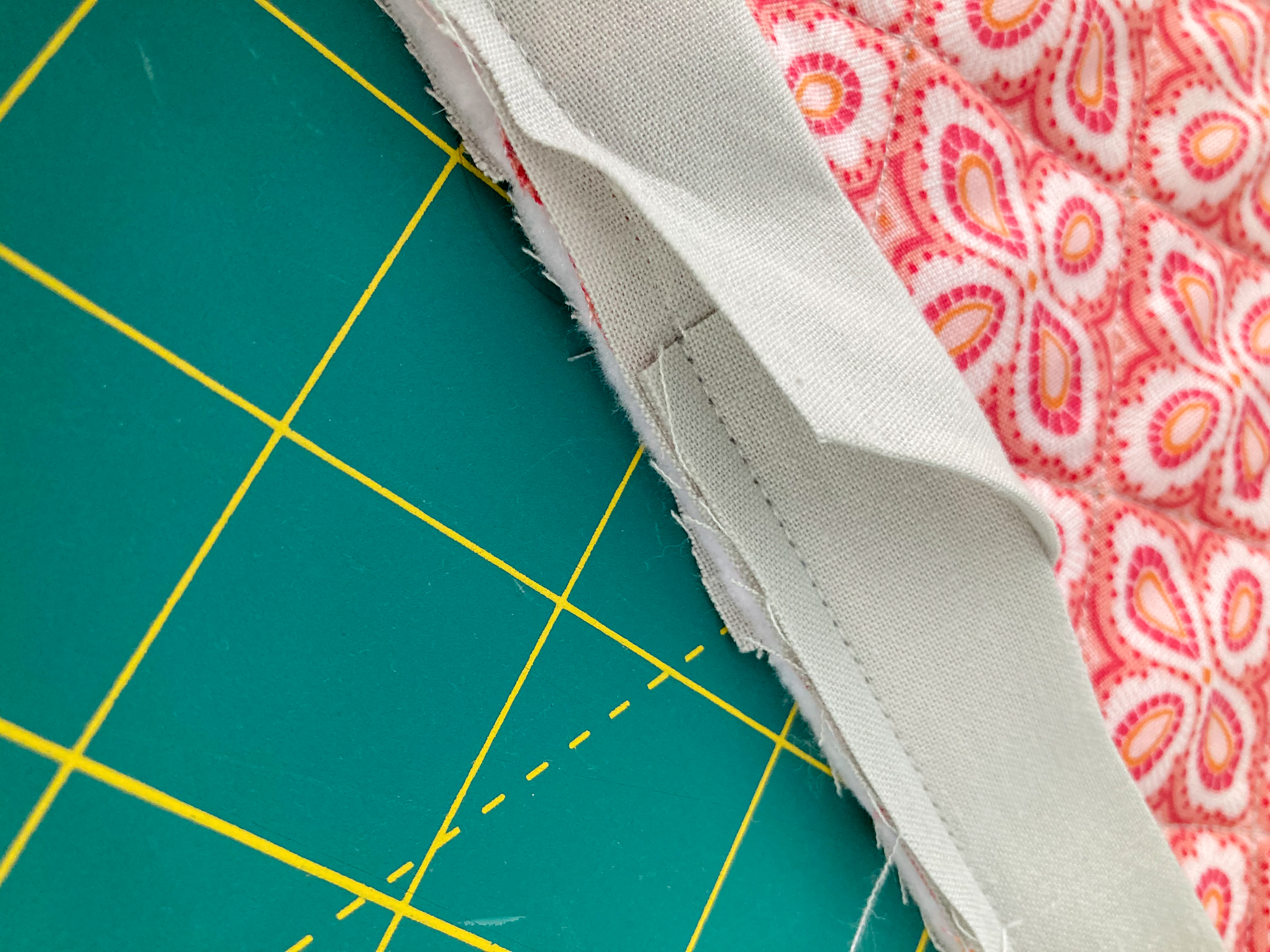 When you get back around to where you started you will attach the 2 ends of binding. I use the pocket method for mine.