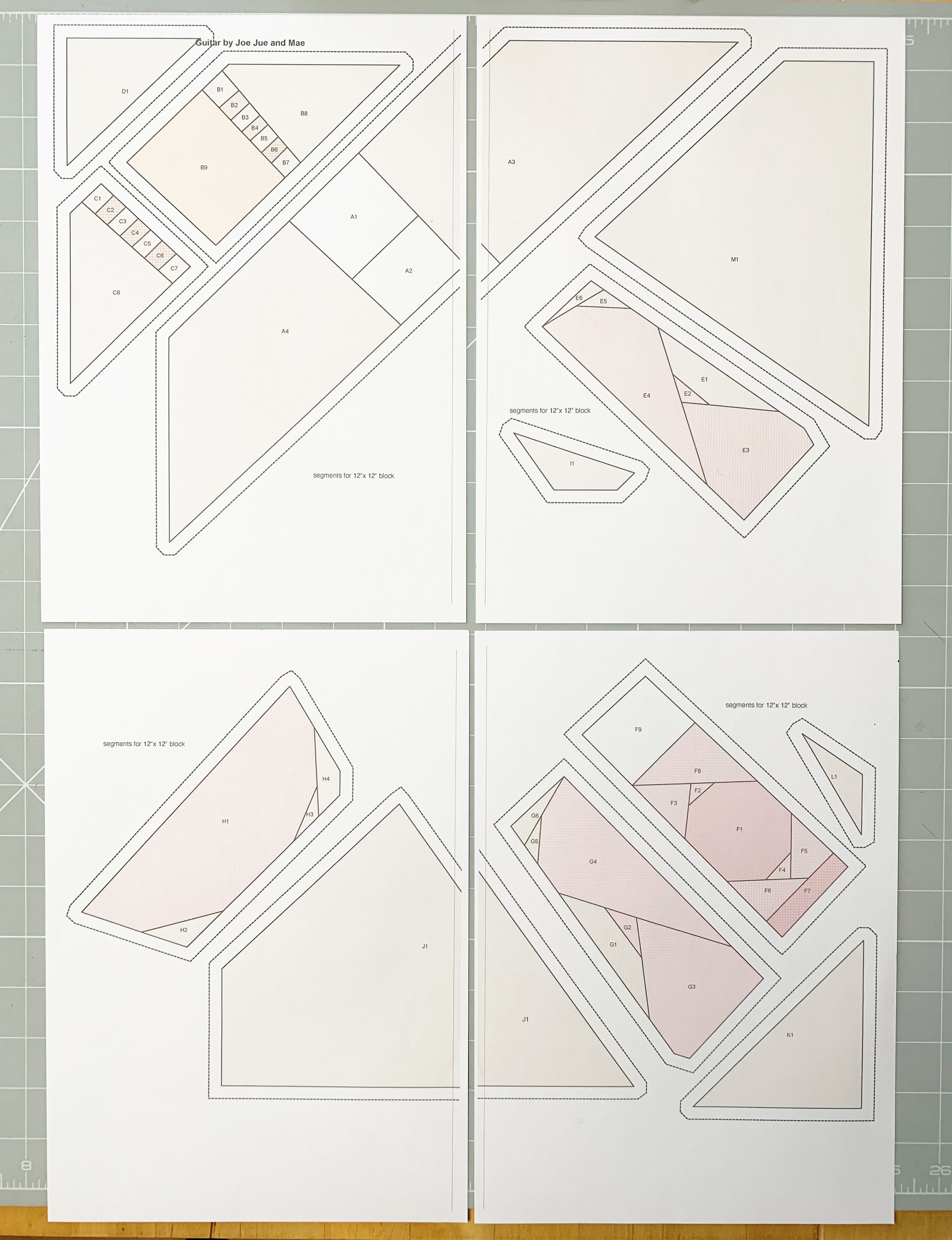 2. For the 12″ x 12″ block, some segments need to be glued together. Please don’t use tape, as the block will be pressed several times.
