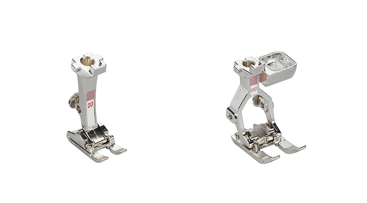 The wedge-shaped indentation in the sole of Open Embroidery Foot #20 allows decorative stitches to move under the foot easily and smoothly without dragging on the thread that builds up as the stitches form. The open front of the foot makes it easy to place the stitch precisely, such as when following a seam line.